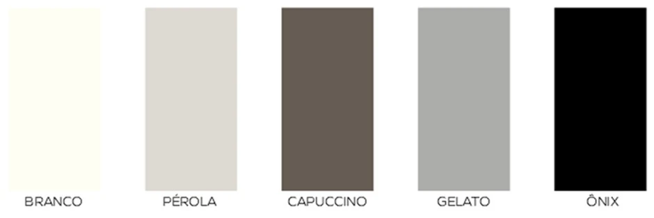 A Pintura alto brilho está disponível nas cores: Branco, Pérola, Capuccino, Gelato, Ônix