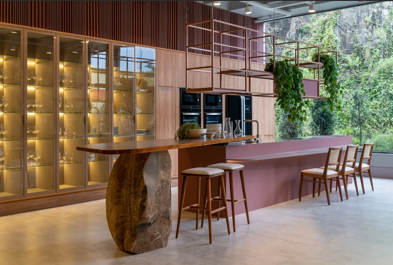 Percebemos que a natureza dentro de casa acalma e revigora. A iluminação natural ganha destaque, provocando sensações de aconchego e calmaria, bem como integrando o interno com o externo.